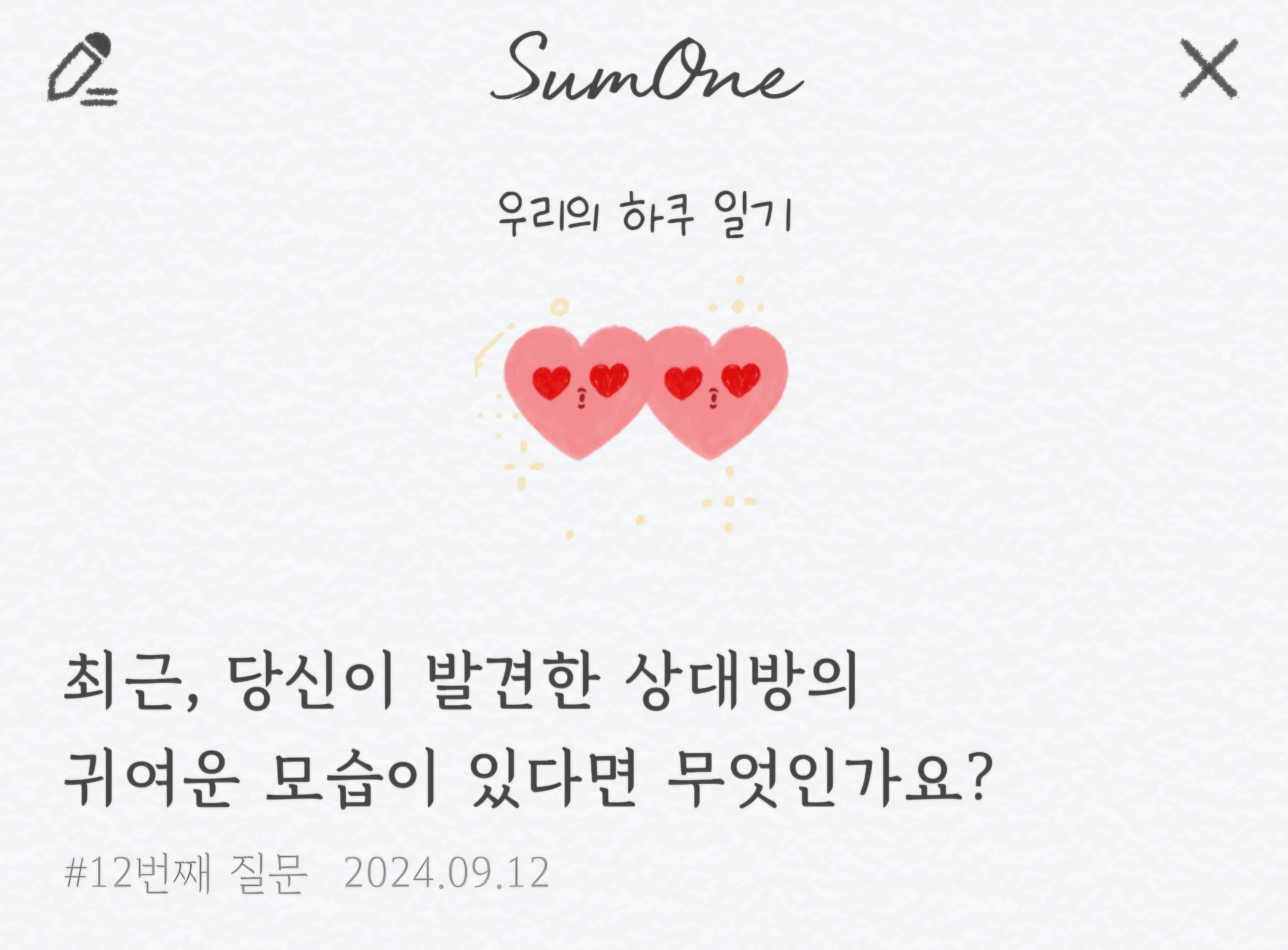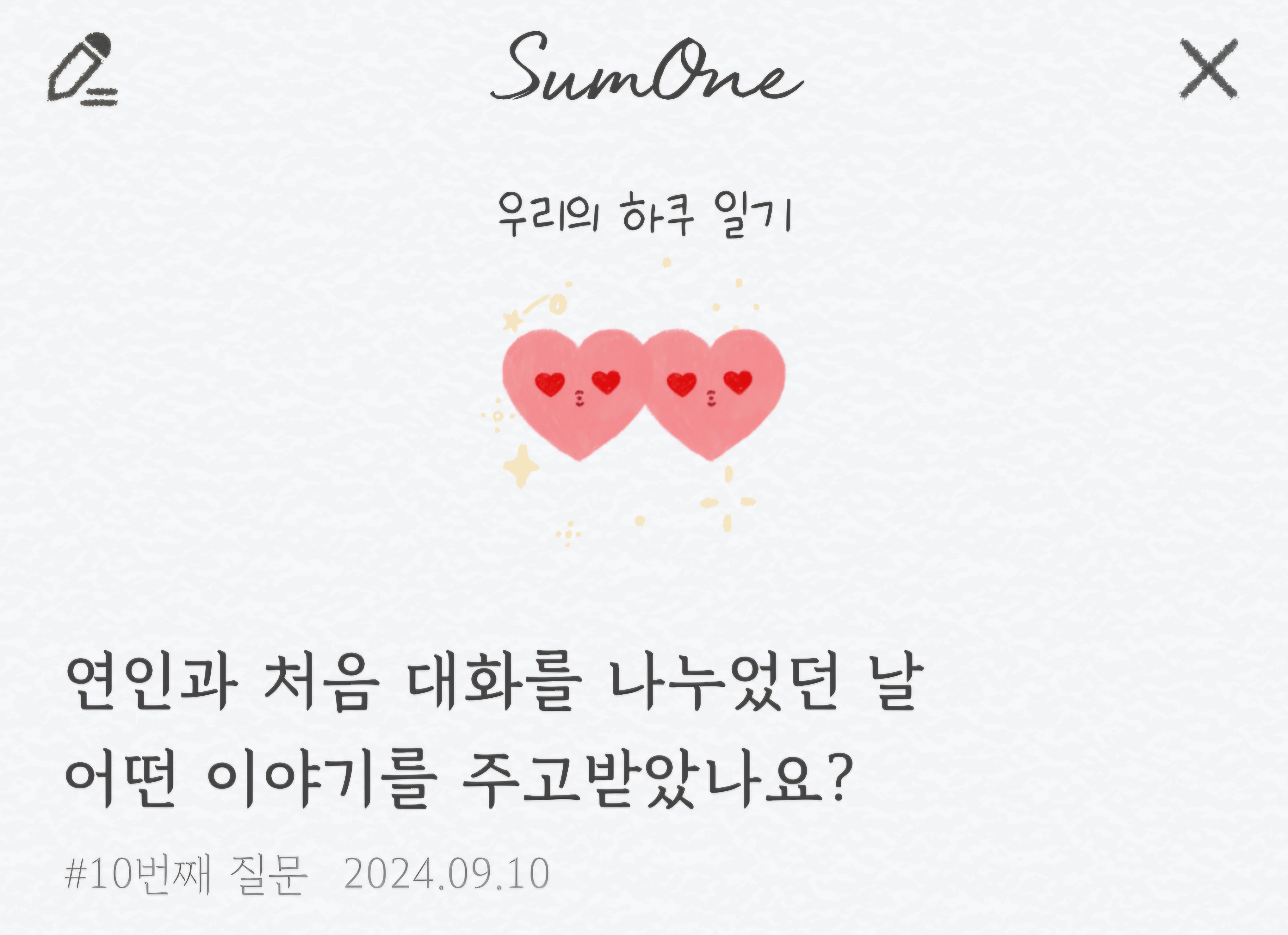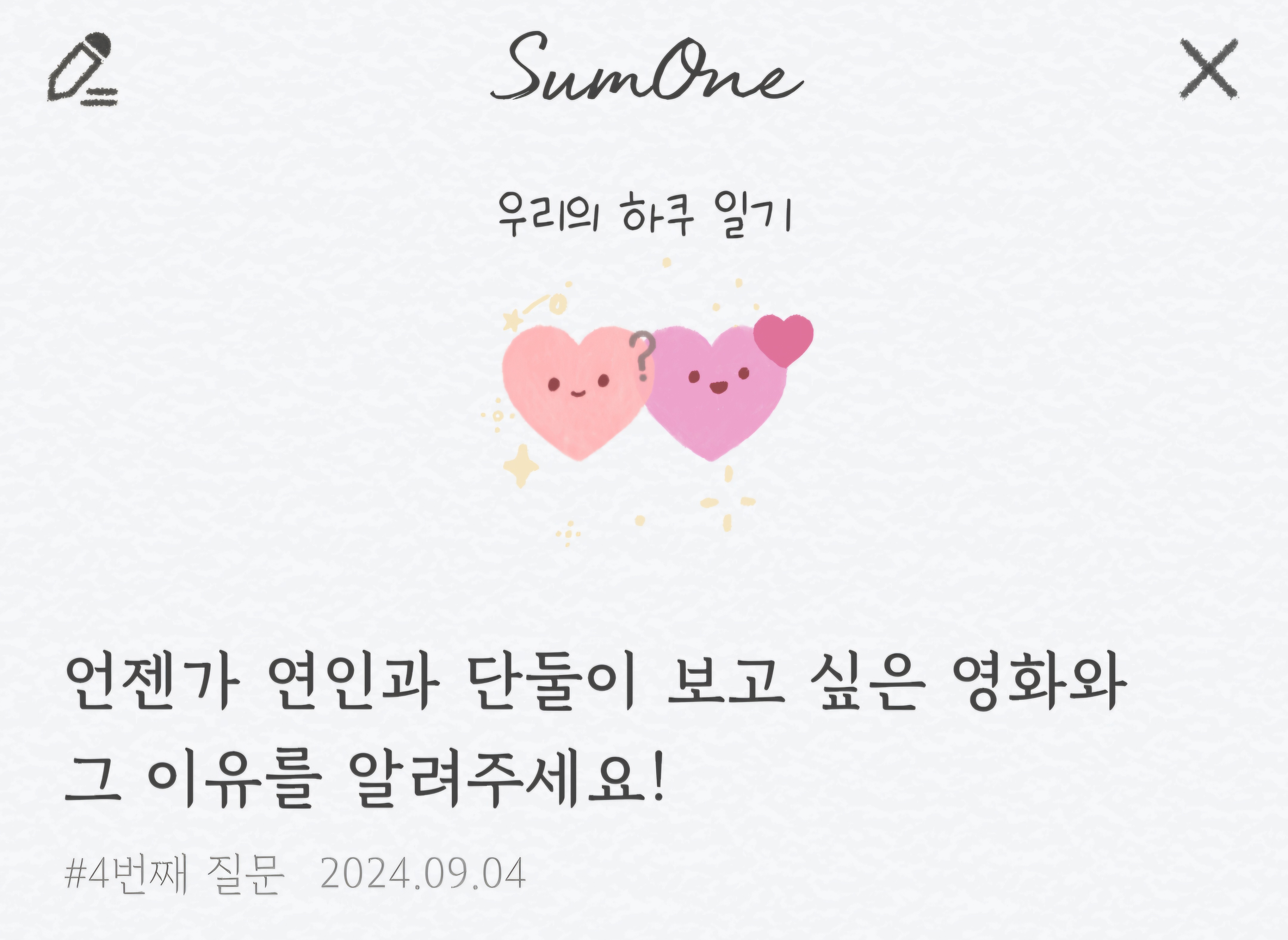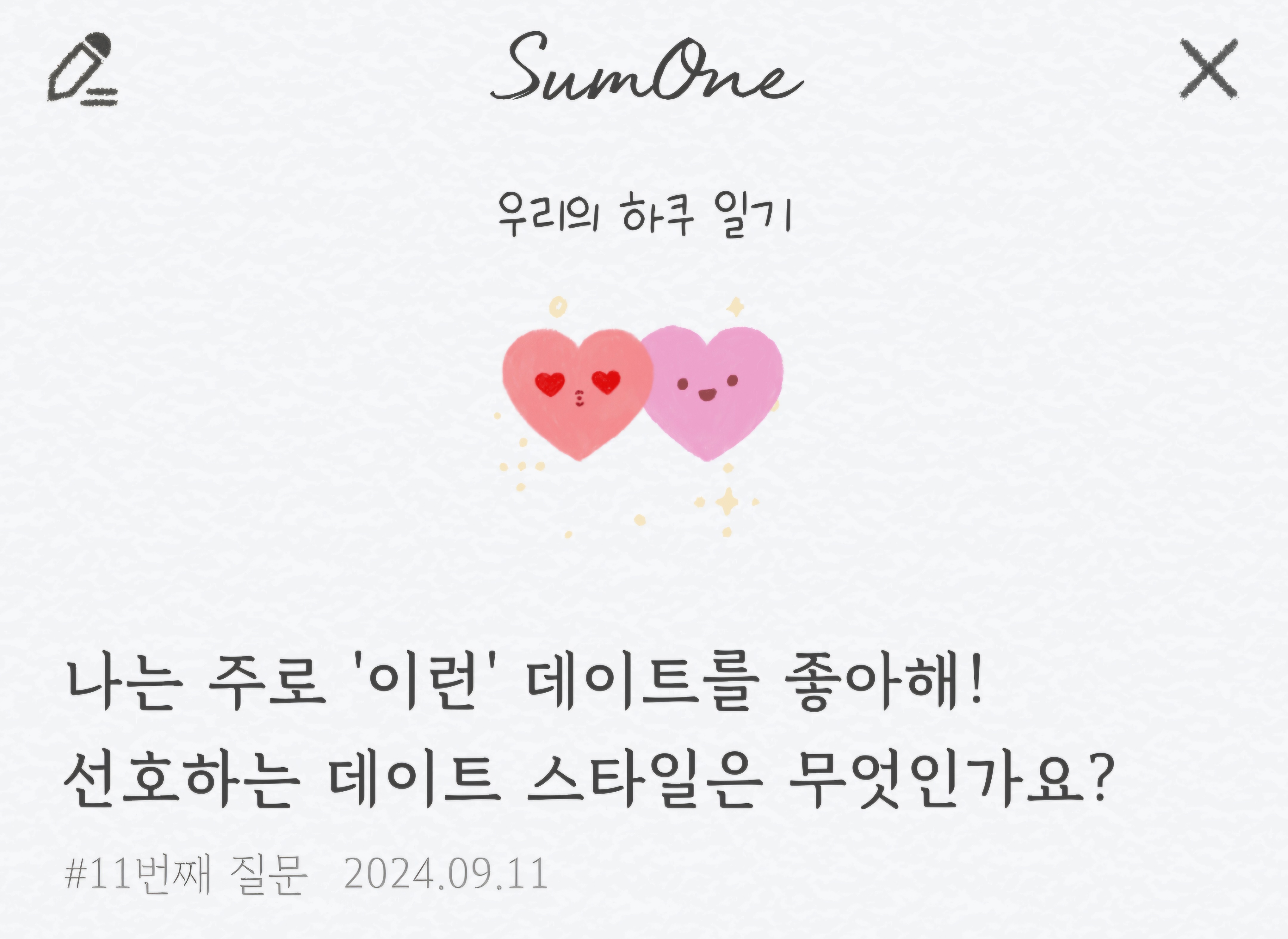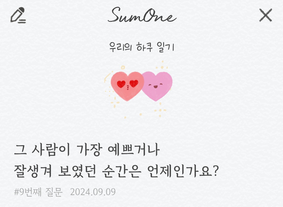 오늘은 커플 어플 썸원(SumOne)의 질문 1번 ~ 15번에 대해서 알아보았습니다.